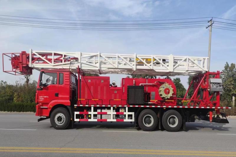 XJ350修井机主要用于浅井修井、试油、投捞、检泵作业,其主要工作系统为提升作业系统、旋转作业系统和底盘行走系统。该产品配置齐全,适应范围广,配备钻台和相关部件可进行大修和侧钻以及水井钻井作业。