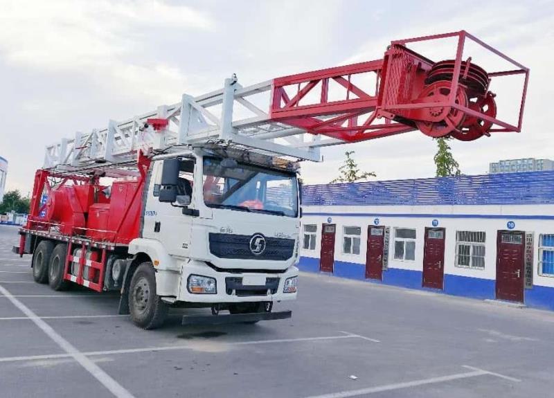XJ250修井机是较小级别的自走式修井机,主要用于浅井修井、试油、投捞、检泵作业。其主要工作系统为提升作业系统,未配置旋转作业系统。该产品采用单滚筒绞车、双节井架,选用经济实用的国产名牌发动机和液力传动箱。
